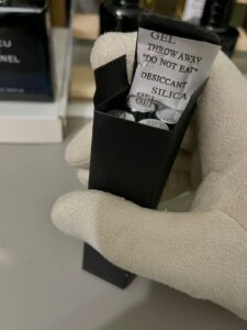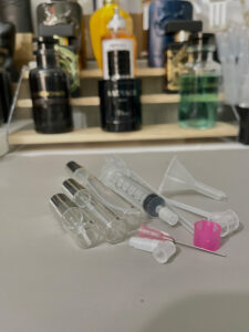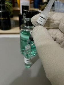 A brand-new sterile syringe is used for every fragrance. Tools are never reused.