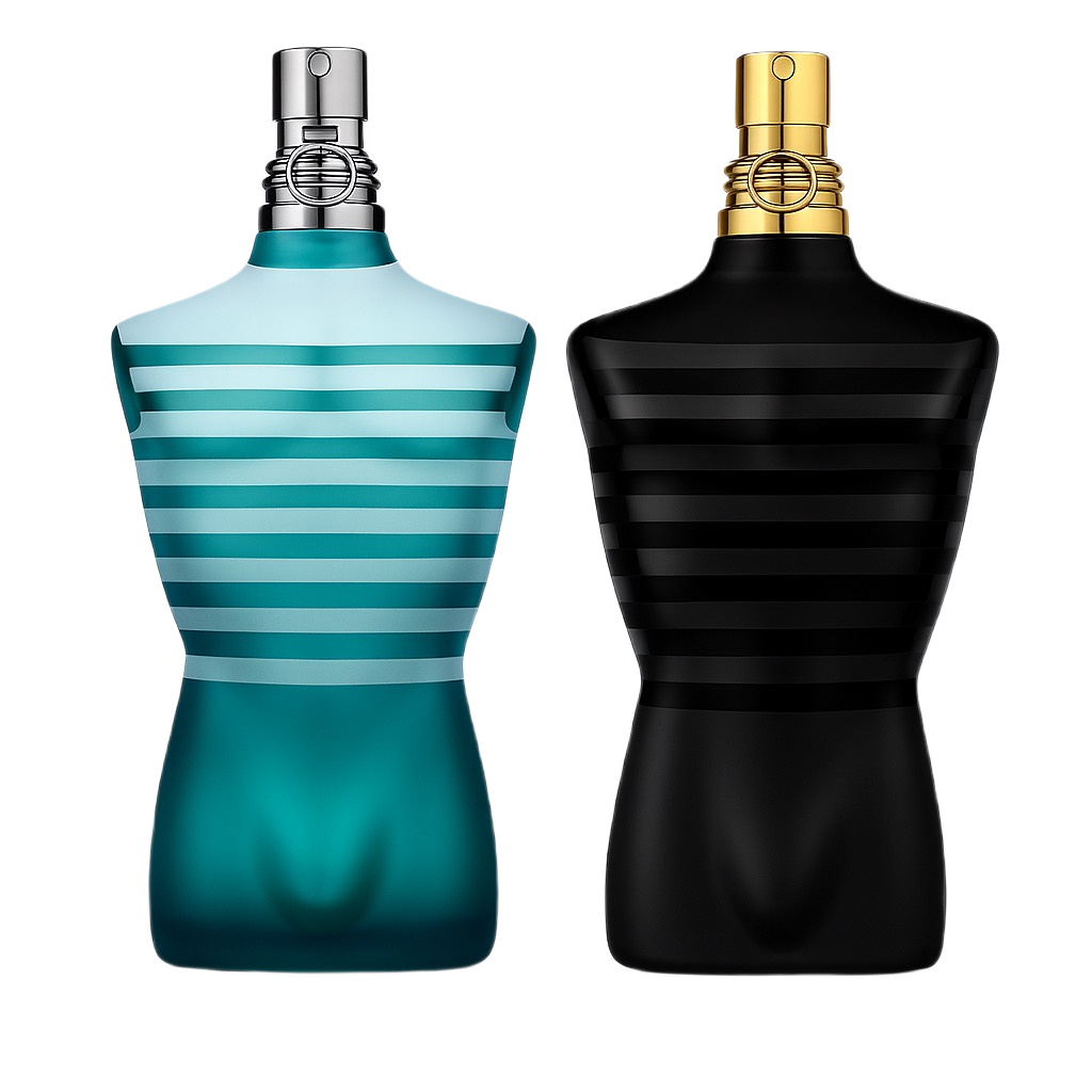 2 premium decants 5 mL each (100+ sprays each): Jean Paul Gaultier Le Male EDT, Jean Paul Gaultier Le Male Le Parfum. Prepared fresh, leak‑proof glass atomizers.